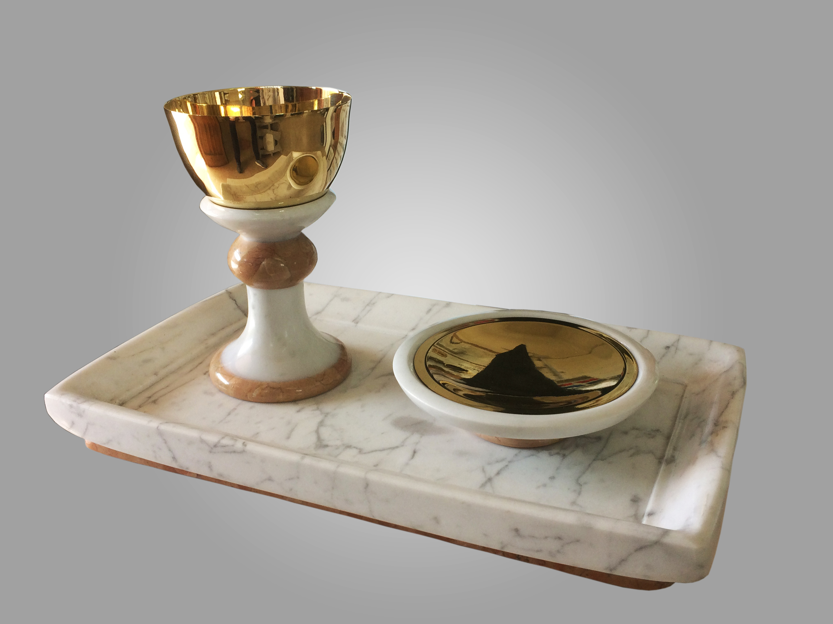 Calice e patena in marmo e ottone